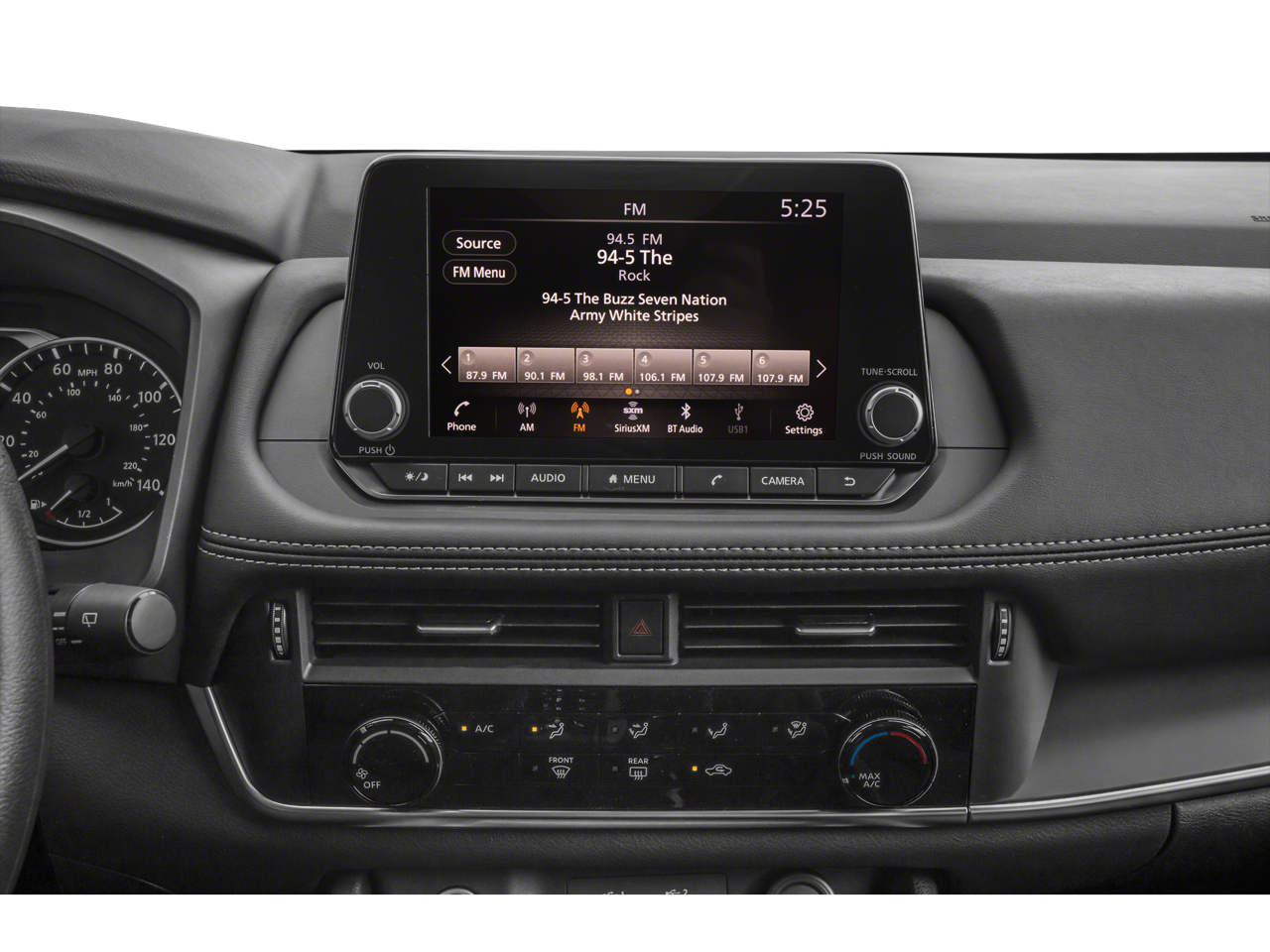 - Radio: AM/FM -inc: 4 speakers, NissanConnect featuring Apple CarPlay and Android Auto, 8" color display w/multi-touch control, SiriusXM satellite radio, 2 illuminated USB connection ports (1 type-A, 1 type-C), Bluetooth® hands-free phone system, streaming audio via Bluetooth® and hands-free text messaging assistant